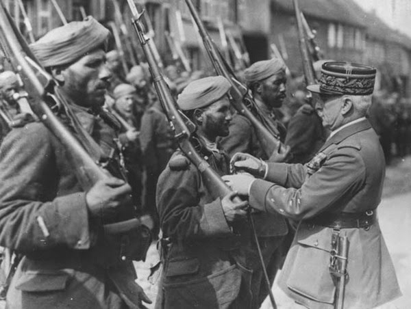 | Fransız subay Suriye'de yerel askerlerden bir birliği denetlerken. |